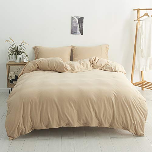 DONEUS Jersey Knit Cotton Duvet Cover Twin(68″ x 90″), 3 Pieces Solid Pattern Champagne Bedding Set, 1 Duvet Cover and 2 Pillow Shams, Super Soft Duvet Cover Set and Easy Care- Amazon.com