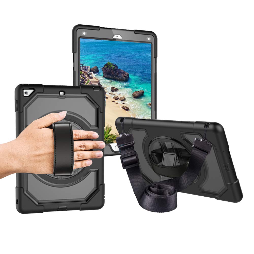 iPad 6th/5th Generation Case, New iPad 9.7 Inch 2018/2017 Case Shock Proof Hybrid Armor Protective Heavy Duty Case with 360 Rotating Stand & Hand & Shoulder Strap for iPad 5th/6th Generation (Black)- Amazon.com