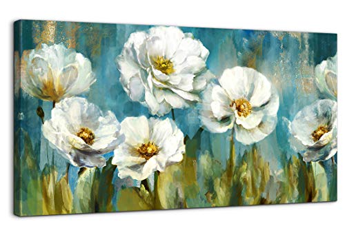 Canvas Art Wall Decor for Living Room Large Wall Art Modern Home Decor White Flowers Green Abstract Theme Framed Art Prints Wall Decor for Bedroom Modern Artwork Living Room Wall Decor Size 20×40- Amazon.com