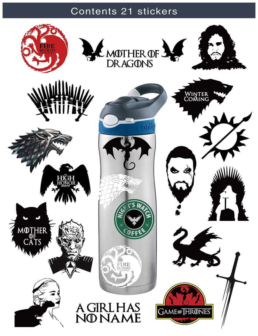 S-001 21pcs Game of Thrones Season 8 Stickers MacBook Pro Vinyl Stickers MacBook Air Stickers for Water Bottles Hydro Flask Stickers Vsco Stickers Laptop Stickers- Amazon.com