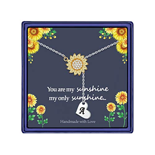 Sunflower Necklace Gift for Women Girls, 14k Gold Plated Sunflower Necklace Sunflower CZ Pendant Necklace Heart Initial Necklace You are My Sunshine Necklace Sunflower Jewelry for Women- Amazon.com