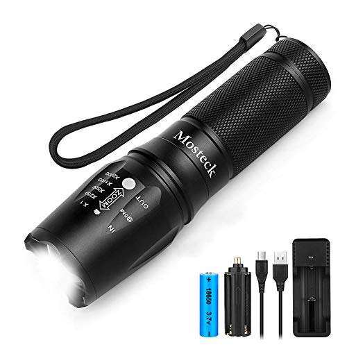 LED Rechargeable Flashlight – Mosteck Tactical Flashlight Ultra Bright High Lumens with 5 Light Modes for Camping Outdoor Activities (18650 Battery & USB Charger Included)- Amazon.com