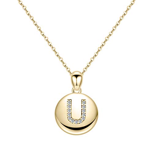 Turandoss Letter Initial Necklace for Women Girls, 16″ Round Disc Engraved CZ Initial Necklace 14K Gold White Gold Plated Letter Necklaces for Teen Girls- Amazon.com
