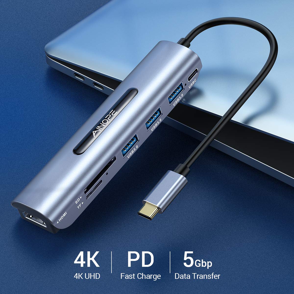 AINOPE USB C Hub, 7-in-1 USB C Adapter, with 4K USB C to HDMI, SD/TF Card Reader, 3 USB 3.0 Ports, with 60W Power Delivery for MacBook Pro, ChromeBook, XPS, Galaxy S9/S8, and More- Amazon.com
