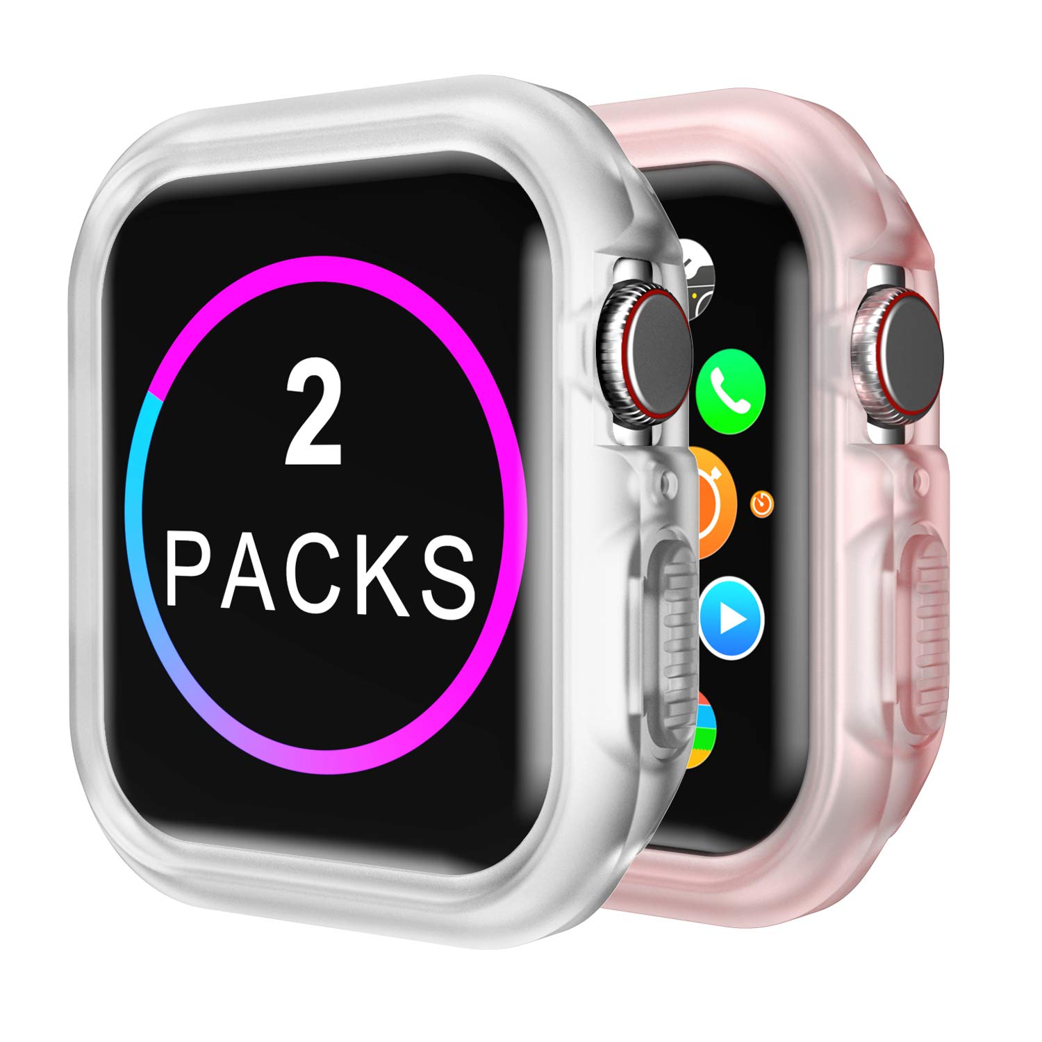 Compatible Apple Watch Case Series 4 Series 5 44mm [2 Packs] TPU Protective iwatch Case, Translucent & Clear-Pink- Amazon.com