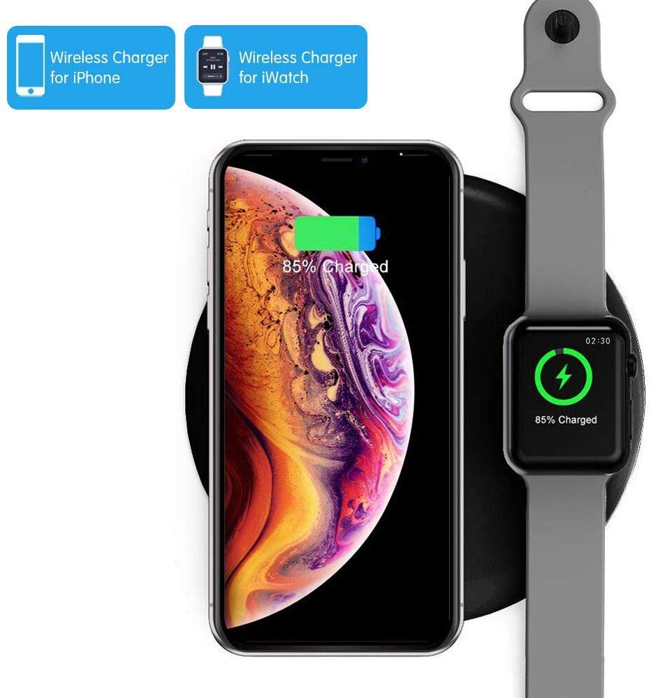 COSOOS Wireless Charger,2 in 1 Qi Wireless Charging Pad, Dual Charging Mat Compatible with iWatch Series 2/3/Nike+/Edition,iPhone 11 Pro Max/11Pro/11/XS/XR/X/8Plus/8,Airpods Pro/2 (with QC3.0 Adapter)- Amazon.com