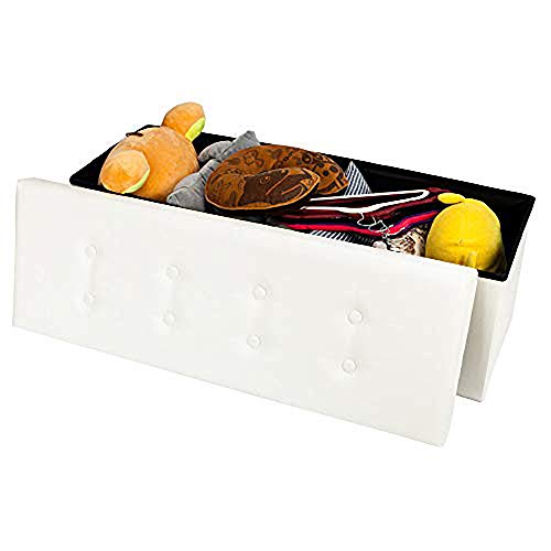 Practical PVC Leather Rectangle Shape with Leather Button Footstool Large Size White- Amazon.com
