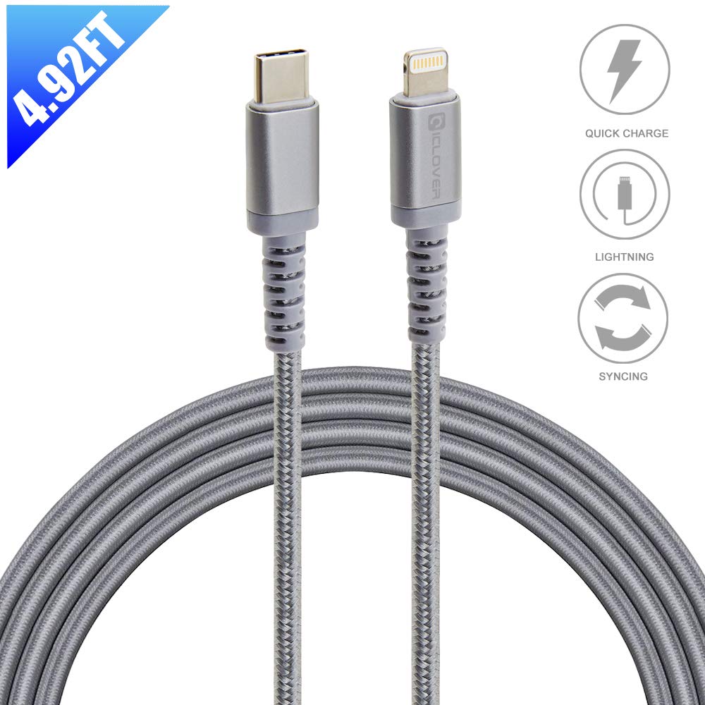 USB C to Lightning Cable,IC ICLOVER (Apple MFI Certified) Type C PD Fast Charging Syncing Cord for iPhone X/XS MAX/8/8 Plus,MacBook 2016/2018 Release,iPad,Other iOS Devices (4.9ft Gray Braided)- Amazon.com