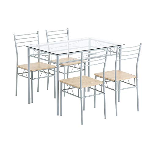 5 Pcs Dining Table Set, Iron Glass Dining Table and 4 Chairs PU Cushion for Living Room Kitchen (Sliver)- Amazon.com