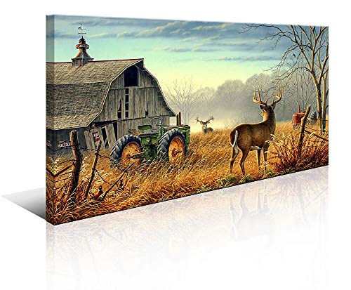 Large Deer Wall Art for Living Room Canvas Prints Decor Decoration Country Tractor Rustic Wildlife Cabin Hunting Picture Glass Surface Artwork Ready to Hang for Bedroom Home Office 24×48- Amazon.com