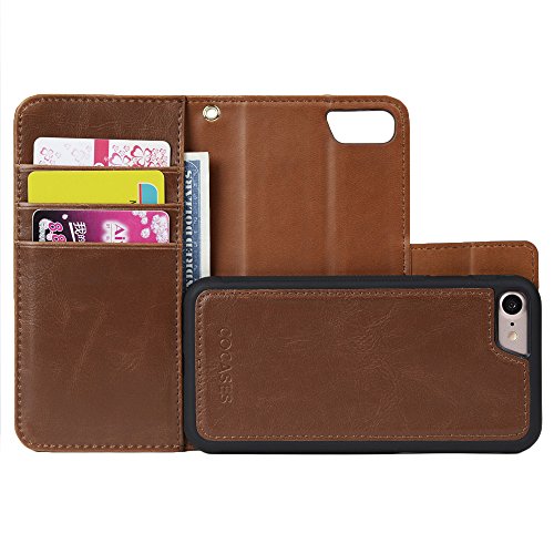 COCASES Wallet Case Compatible with iPhone 7, iPhone 8, PU Leather 2-in-1 Magnetic Flip Folio Detachable Kickstand Cover Credit Card Holder Wristlet 4.7” – Brown- Amazon.com