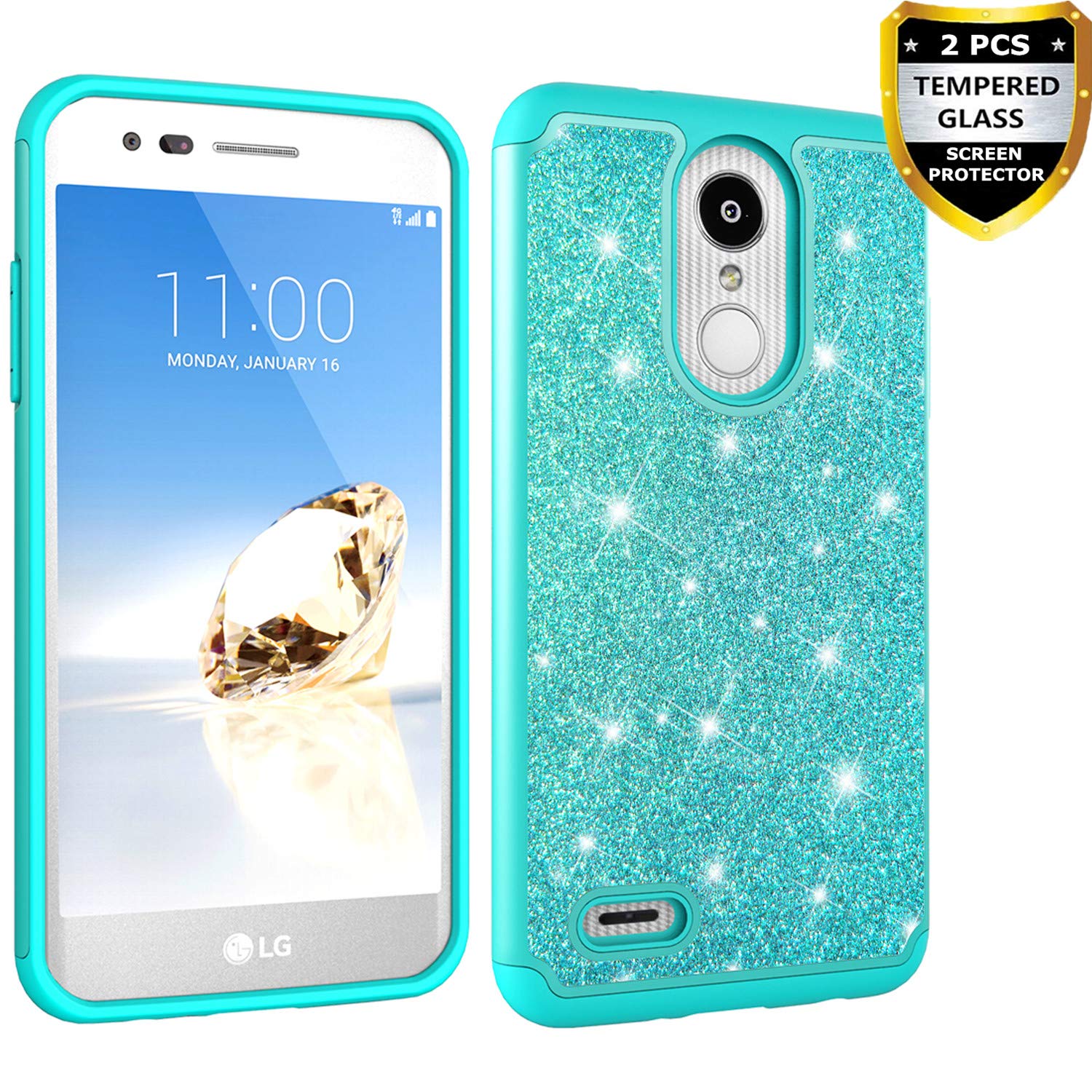 LG K30 / Harmony 2 / LG Phoenix Plus/LG Premier Pro Case with Tempered Glass Screen Protector [2 Pack] for Girls Women, AUMIAU Glitter Bling Heavy Duty Protection Case for LG K10 2018 (Green)- Amazon.com