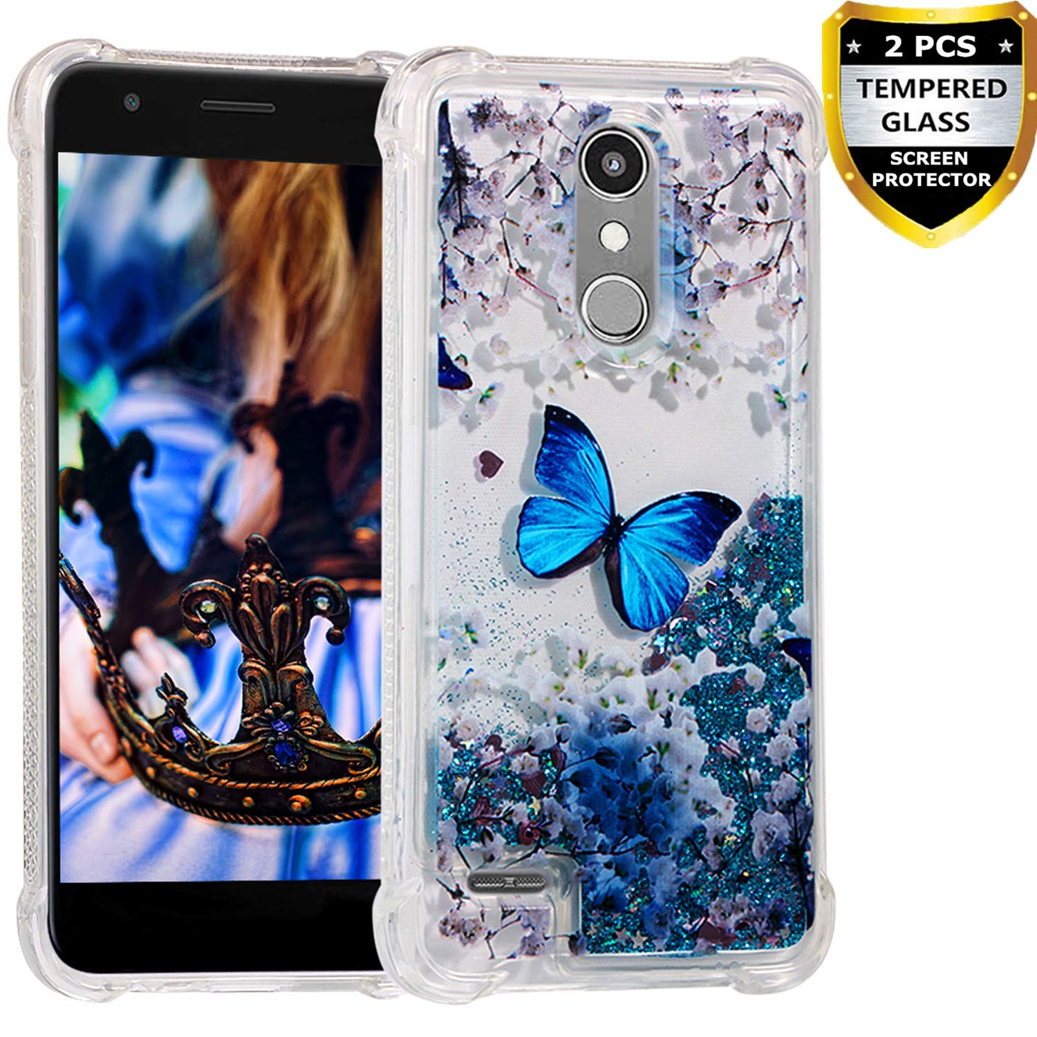 LG K30 Case with Tempered Glass Screen Protector [2 Pack] for Girls Women, AUMIAU Glitter Liquid Quicksand Clear Cute Lovely Soft TPU Shockproof Cases Cover for LG K10 2018 Release (Blue)- Amazon.com