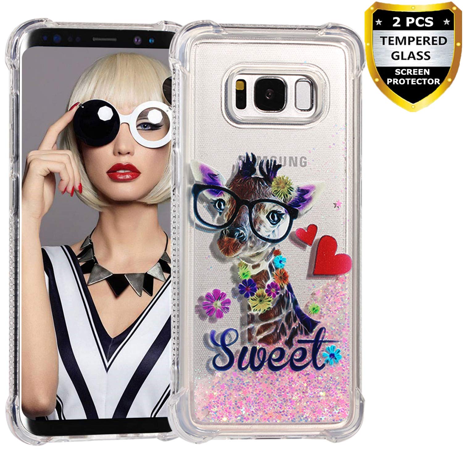 Galaxy S8 Plus Case with Tempered Glass Screen Protector [2 Pack] for Girls Women, AUMIAU Liquid Glitter Bling Cute Clear Soft TPU Shockproof Cases Cover for Samsung Galaxy S8 Plus (Pink)- Amazon.com