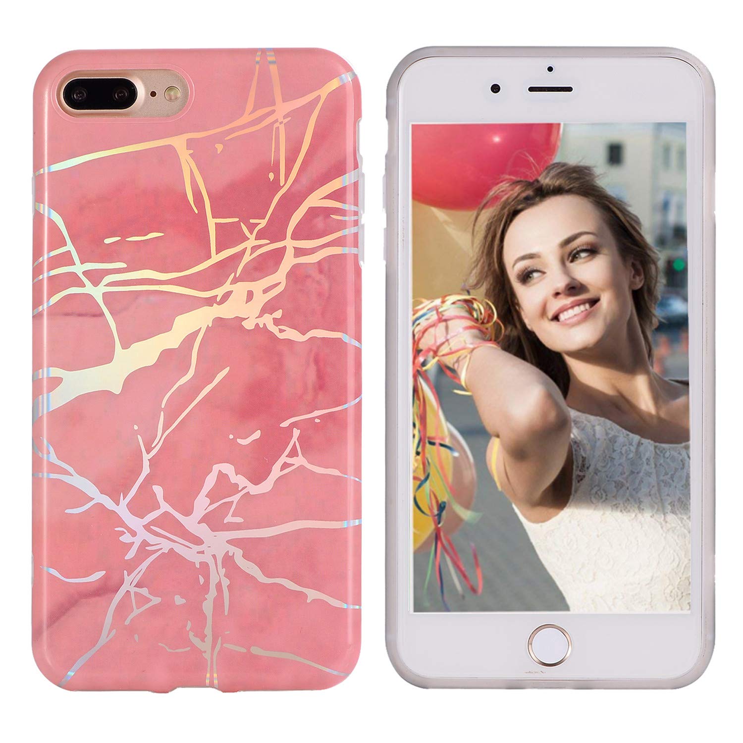iPhone 7 Case, iPhone 8 Case, AUMIAU Cute Shiny Laser Marble Slim Soft TPU Clear Bumper Flexible Rubber Silicone Rugged Thin Cover Phone Case for Apple iPhone 7/8 (Pink)- Amazon.com