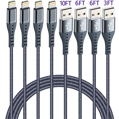 iPhone Charger Lightning Cable XnewCable 4Pack(10ft 6ft 6ft 3ft) Apple Certified Nylon Braided Long Fast USB Cord Compatible for iPhone 11Pro MAX Xs XR X 8 7 6S 6 Plus SE 5S 5C (Gray)- Amazon.com