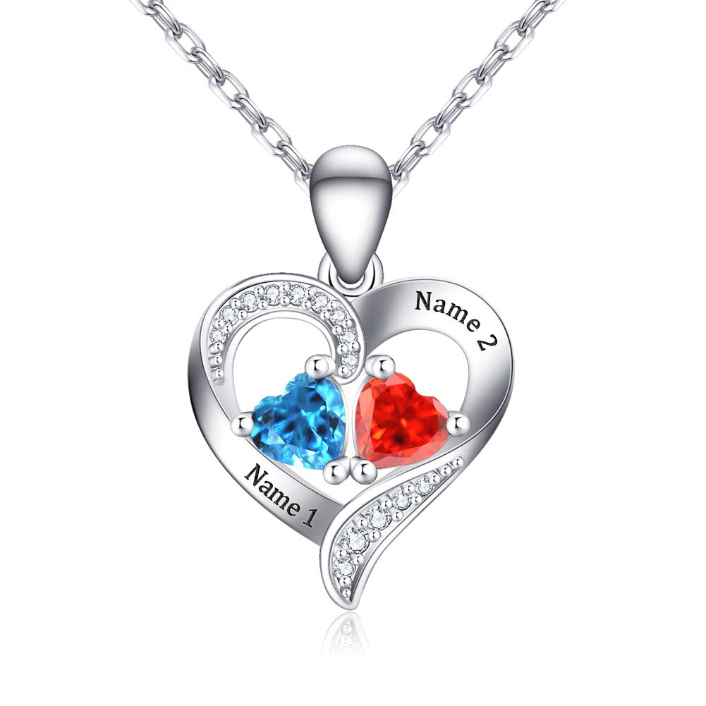 Personalized Mom Necklace with Birthstone, Sterling Silver Custom Engraved Heart Necklace, Mother Daughter Necklace Gift for Women- Amazon.com