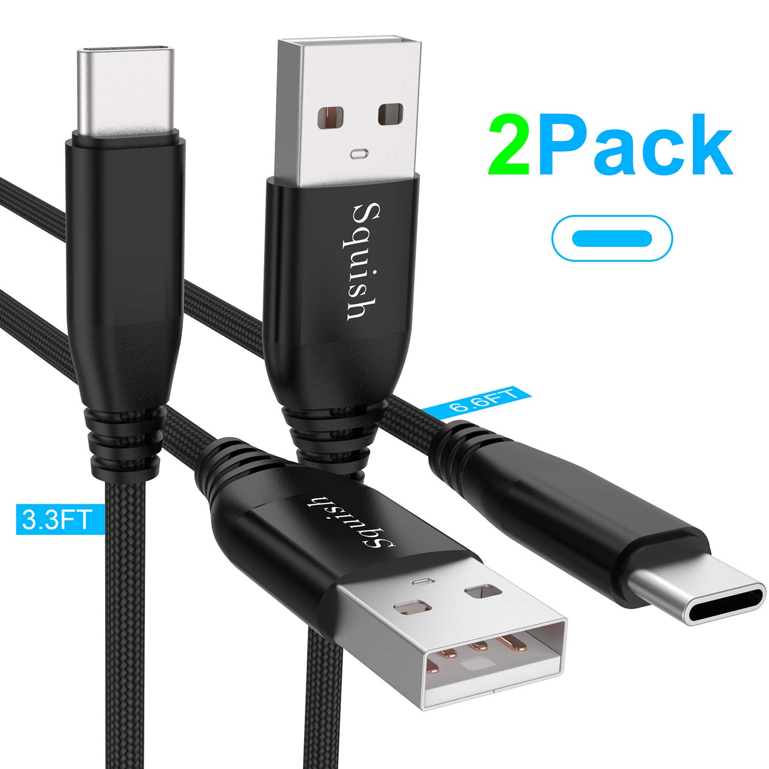 Squish USB Type C Cable (2 Pack/3.3ft&6.6 ft), USB C Cable Nylon Braided (USB 3.0) Fast Charging Charger Cable for Samsung S10 Plus S10e S9 S8 Note 8/9, Google Pixel, Nexus Nintendo Switch LG (Black)- Amazon.com