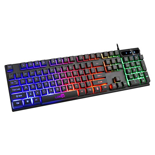 Aimik Colorful Gaming Backlit Keyboard, 104 Keys Crack LED Illuminated Backlit USB Wired PC Rainbow Keyboard Professional Lighting Cable Gaming Keyboard for PC/Mac Game, Office Typing (Black)- Amazon.com