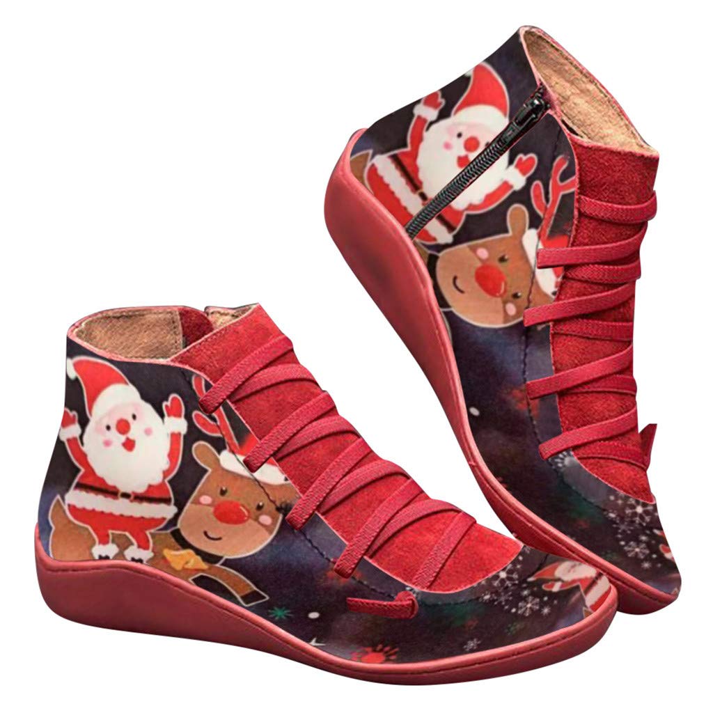 Karamoda Womens Booties – 2019 New Ladies Santa Claus Print Leather Arch Support Boots Ankle Boots Wedge Booties- Amazon.com