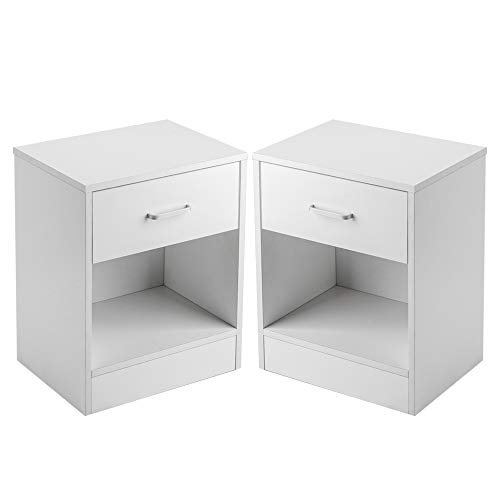 Bedroom Nightstand, Set of 2 Side Tables, End Table for Living Room White- Amazon.com