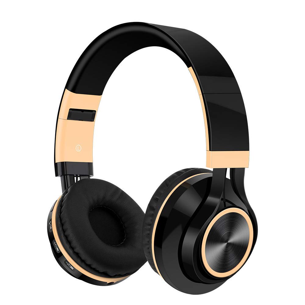 Wireless Bluetooth Foldable Headphones Hi-Fi Stereo Headset w/Mic SD/TF Card High-End earbud design crisp highs and deep low notes 3D Sound Effect conform instantly to your ears (Gold, Freesize)- Amazon.com