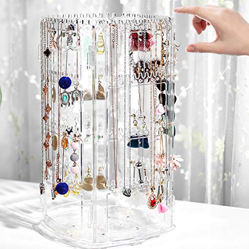 360 Rotating Earring Holder and Jewelry Organizer, 4 Tiers Jewelry Rack Display Classic Stand, 156 Holes and 160 Grooves for Necklaces Earrings Piercings (Clear)- Amazon.com