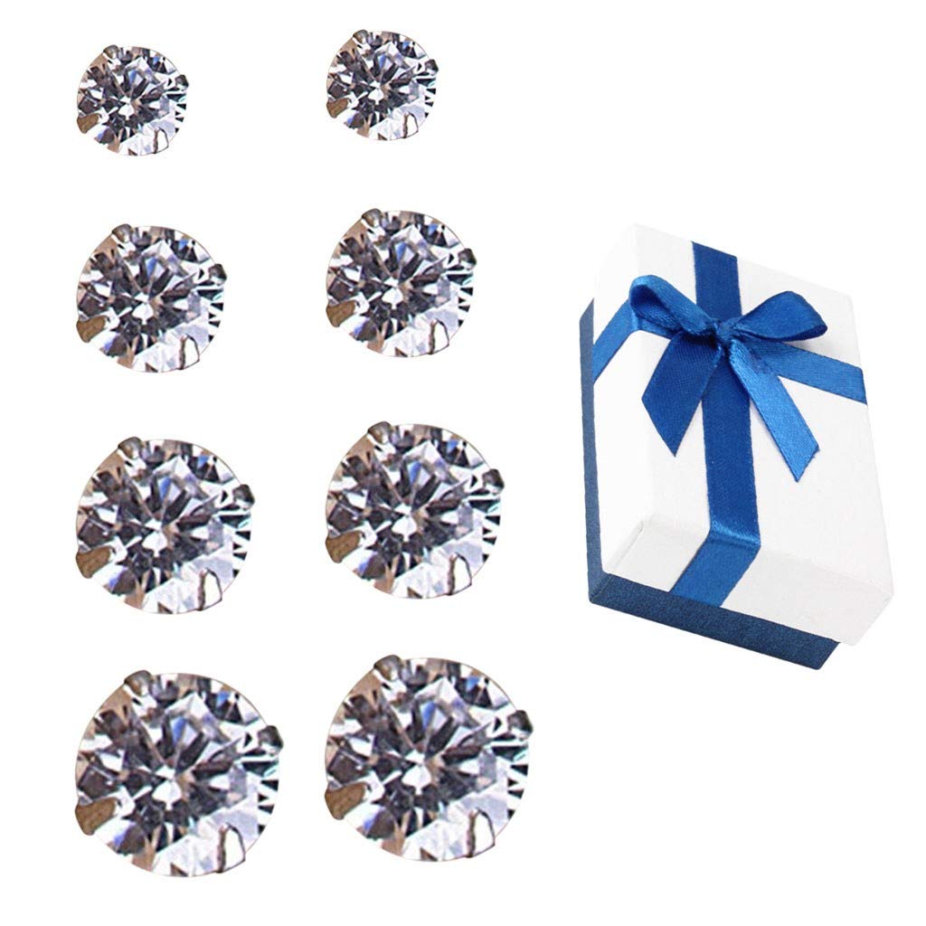 3-6MM Sterling Silver Cubic Zirconia Stud Earrings for Women Round Cut CZ Earrings Set Hypoallergenic Diamond,Cubic Zirconia Ear Stud Set (4 Pairs)- Amazon.com