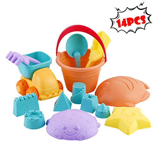 Kids Beach Toy Set, 14 Piece Kit Beach Model Activity Toy Tool – Castle Mould, Marine Mould,Shovel,Dice,Beach Bucket and Beach Truck, Water Play and Sand Boxes Toys Kids Outdoor Toys- Amazon.com