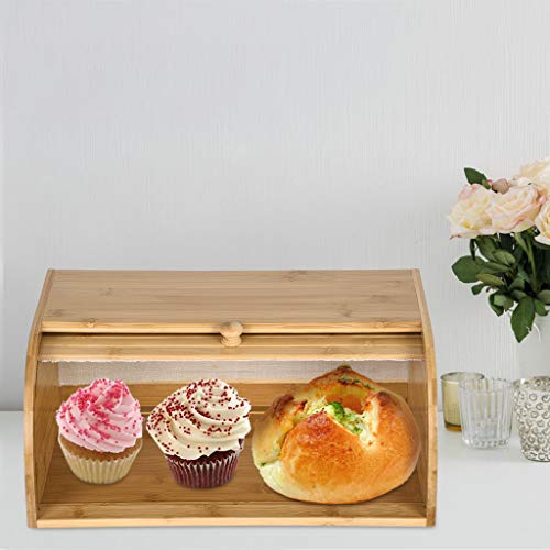 US STOCK Wooden Bread Box Bamboo,Roll Top Bread Holder Bread Organizer Large Capacity Food Storage Bin,No Assembly Required- Amazon.com