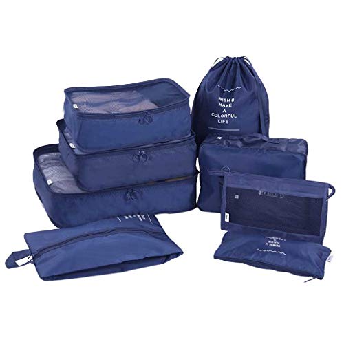 Packing Cubes 8 Piece Latest Design Travel Luggage Organizers Include Waterproof Pouches Shoe Storage Bag Convenient Makeup Bag (navy, 8pcs)- Amazon.com