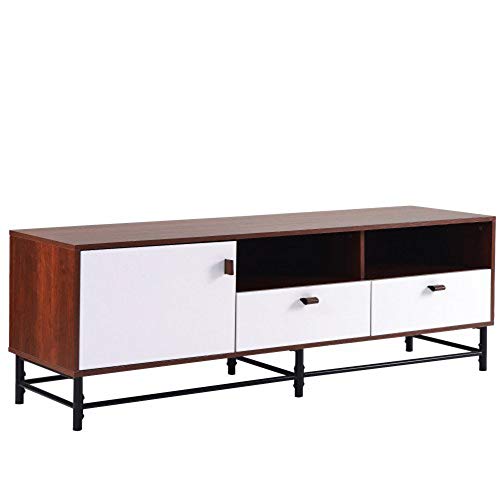 TV Media Stand with Metal Legs, Leather Buckles for TVs’ up to 65 inches in Living Room- Amazon.com