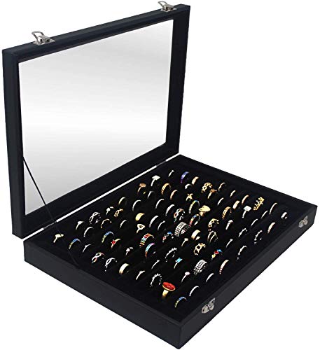 COLNER US Fast Shipment 100 Slots Ring Storage Display Box ~ Ring Holder Showcase for Store Display, Jewelry Show & Home ~ Jewelry Tray Organizer (Black)- Amazon.com