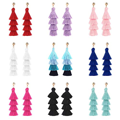 TOPIA STAR 15 Pairs Tassel Earrings Layered Long Thread Ball Dangle Earrings Bohemian Tiered Tassel Drop Earrings Fashion Jewelry for Women Girls Valentine Birthday Party Gifts- Amazon.com
