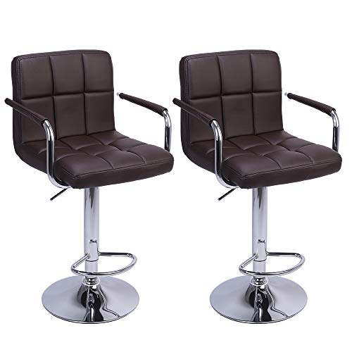 2 Pieces Bar Stools with Armrest Round Cushion Bar Stools Counter Stool Height Adjustable (Coffee)- Amazon.com