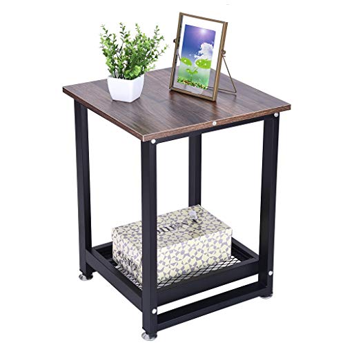 2-Tier End Table – Storage Shelf End Table Creative Tea Desk Vintage Nightstand Coffee Table – Easy Assembly, Wood Look Accent Furniture, with Metal Frame – for Living Room, Bedroom- Amazon.com