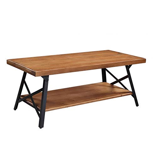 43” Rustic Coffee Table Solid Wood and Metal Legs with Open Shelf for Living Room- Amazon.com