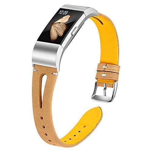 Joyozy Genuine Leather Bands Compatible with Fitbit Charge 2 Smartwatch,Slim Wristbands Replacement Accessories Women Men Stylish Feminine Breathable Triangle Hole Design Versa Strap Light Brown- Amazon.com
