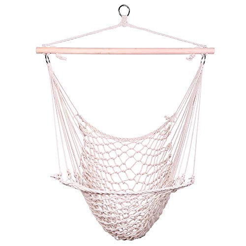 Teeker Cotton Hanging Rope Hammock Distinctive Cotton Canvas Hanging Rope Chair (Beige)- Amazon.com