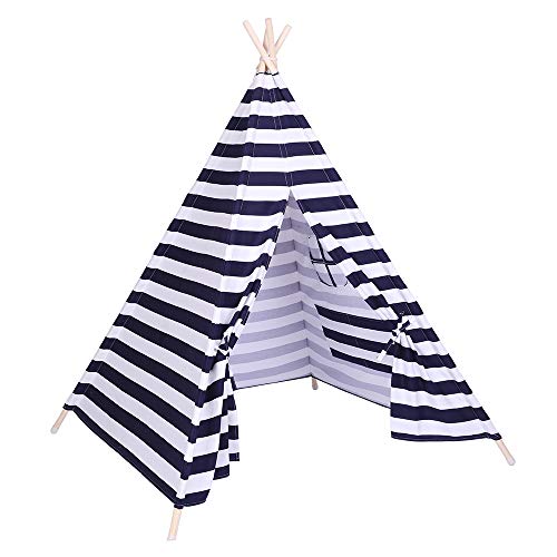 Teeker Indian Tent Children Teepee Tent Baby Indoor Dollhouse with Small Coloured Flags Roller Shade and Pocket Arrow Pattern (Blue and White Stripes)- Amazon.com