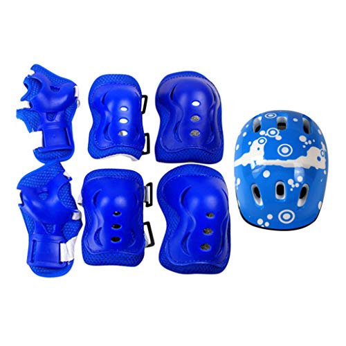 Aimik Kids Protective Gear Set, 7Pcs Sport Safety Equipment Adjustable Child Helmet Knee Elbow Pads Wrist Guards for Skating Skateboard Bicycle BMX Bike and Other Sports Outdoor Activities (Blue)- Amazon.com