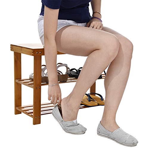 VEZARON Shoe Rack Bench, 3-Tier Shoe Organizer, Storage Shelf & Seat, Made of Natural Bamboo, Wide Application, Idea for Entryway, Hallway, Living Room, Bathroom 28″x11″x18‘’ (Orange)- Amazon.com