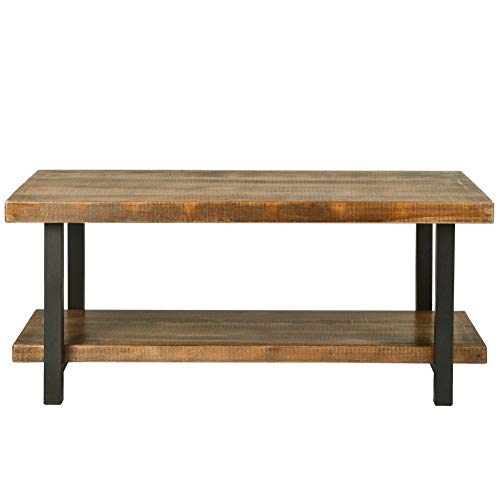 Rustic Natural Coffee Table with Storage Shelf Rectangle Sofa Table for Living Room- Amazon.com